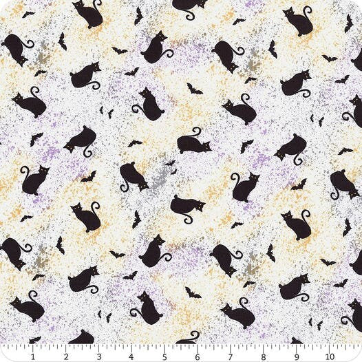 Gnome-ster Mash White Cat Toss Halloween Fabric - Wilmington Prints 82652 195