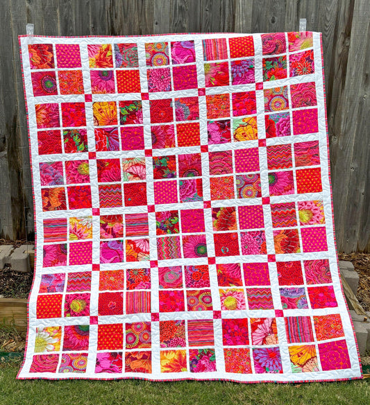 Pink and White Kaffe Fassett Handmade Throw Quilt