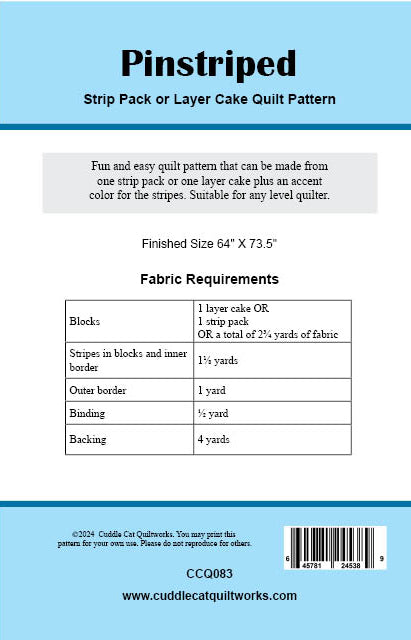 Pinstriped Quilt Pattern Printed Version - Cuddle Cat Quiltworks CCQ083