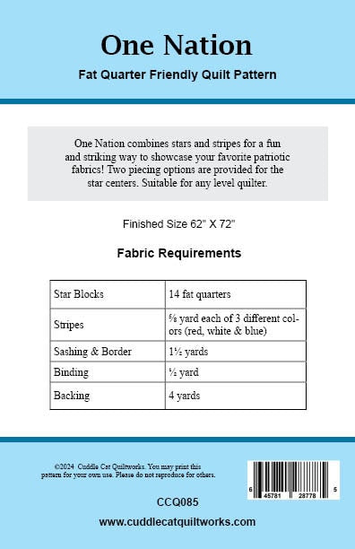 One Nation Patriotic Quilt Pattern - Printed Version - Cuddle Cat Quiltworks CCQ085