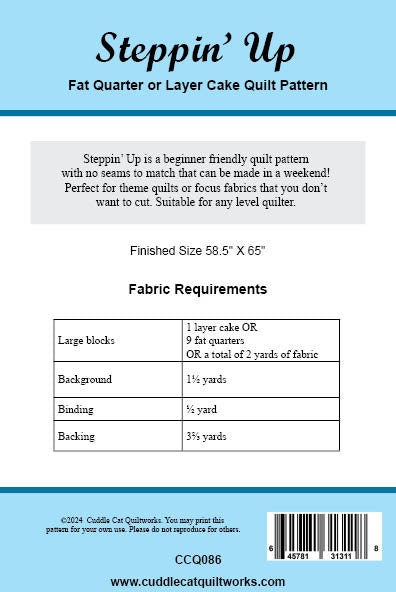 Steppin' Up Quilt Pattern Printed Version - Cuddle Cat Quiltworks CCQ086