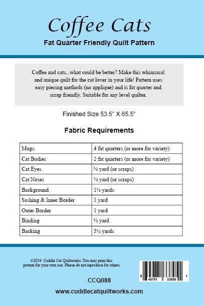 Coffee Cats Quilt Pattern Printed Version - Cuddle Cat Quiltworks CCQ088