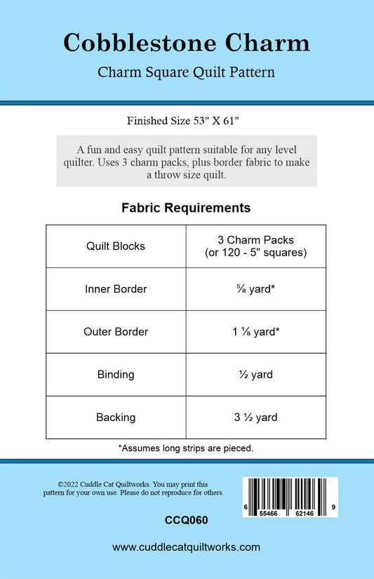 Cobblestone Charm Quilt Pattern for Charm Squares - Printed Pattern