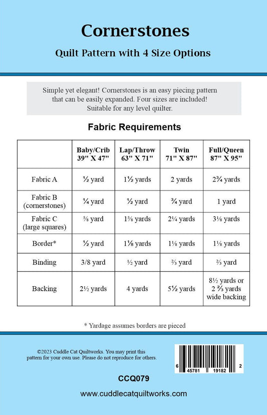 Cornerstones Quilt Pattern Printed Version - Cuddle Cat Quiltworks CCQ079