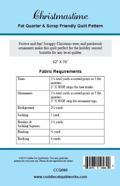 Christmastime Quilt Pattern Printed Version - Cuddle Cat Quiltworks CCQ080
