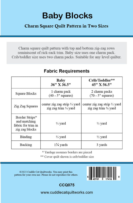 Baby Blocks Charm Square Baby Quilt Pattern in Two Size Options - Digital Quilt Pattern - Cuddle Cat Quiltworks CCQ075