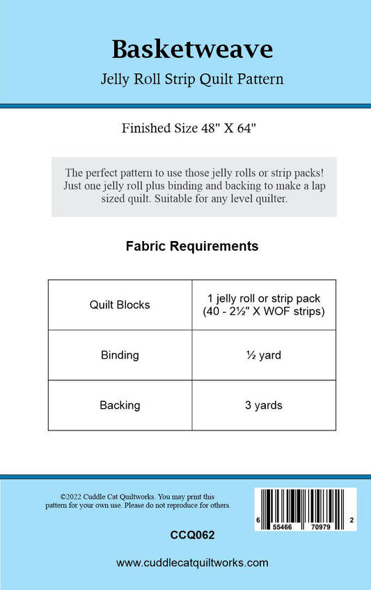 Basketweave Quilt Pattern for Jelly Rolls and Strip Packs - Digital Quilt Pattern - Cuddle Cat Quiltworks CCQ062