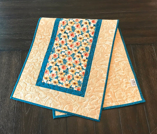 Teal and Cream Floral Table Runner