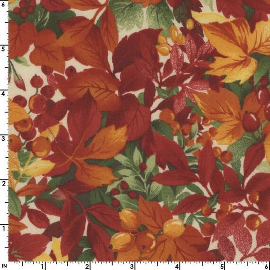 Leaves and Berries Fall Fabric - Maywood Studio 90293-RGO